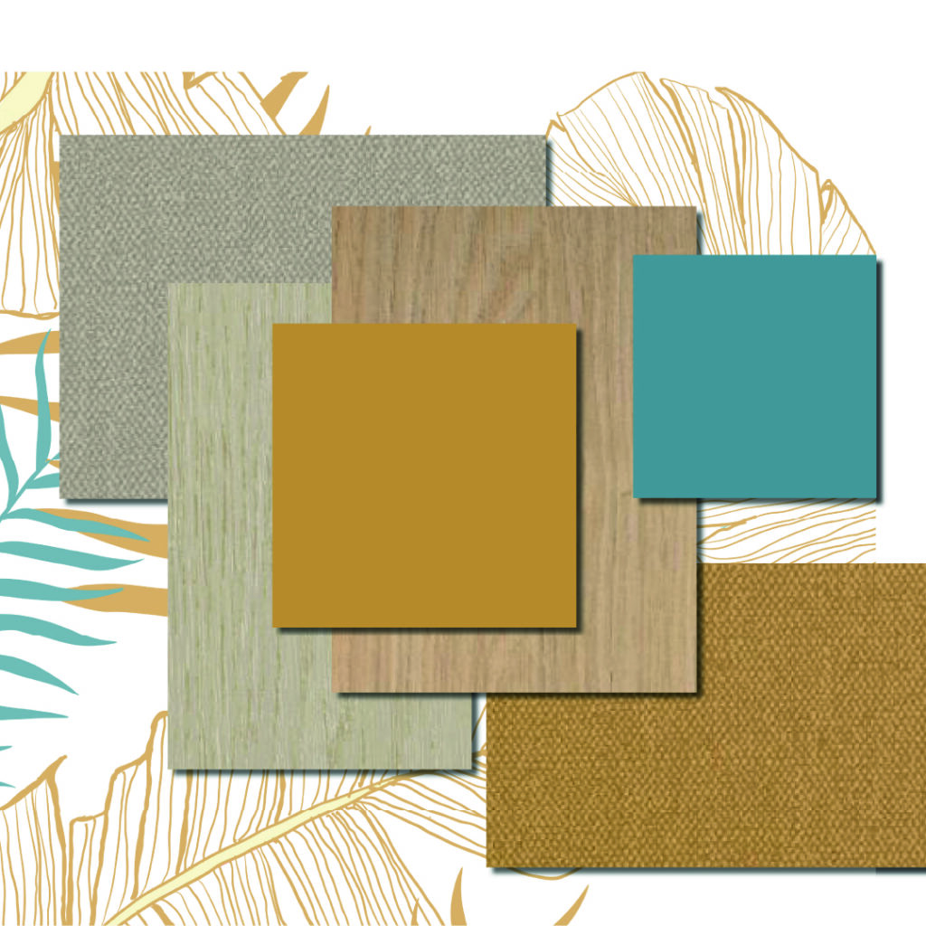 Harmonie couleurs et matières : palette d’une aile du niveau d’Hébergement