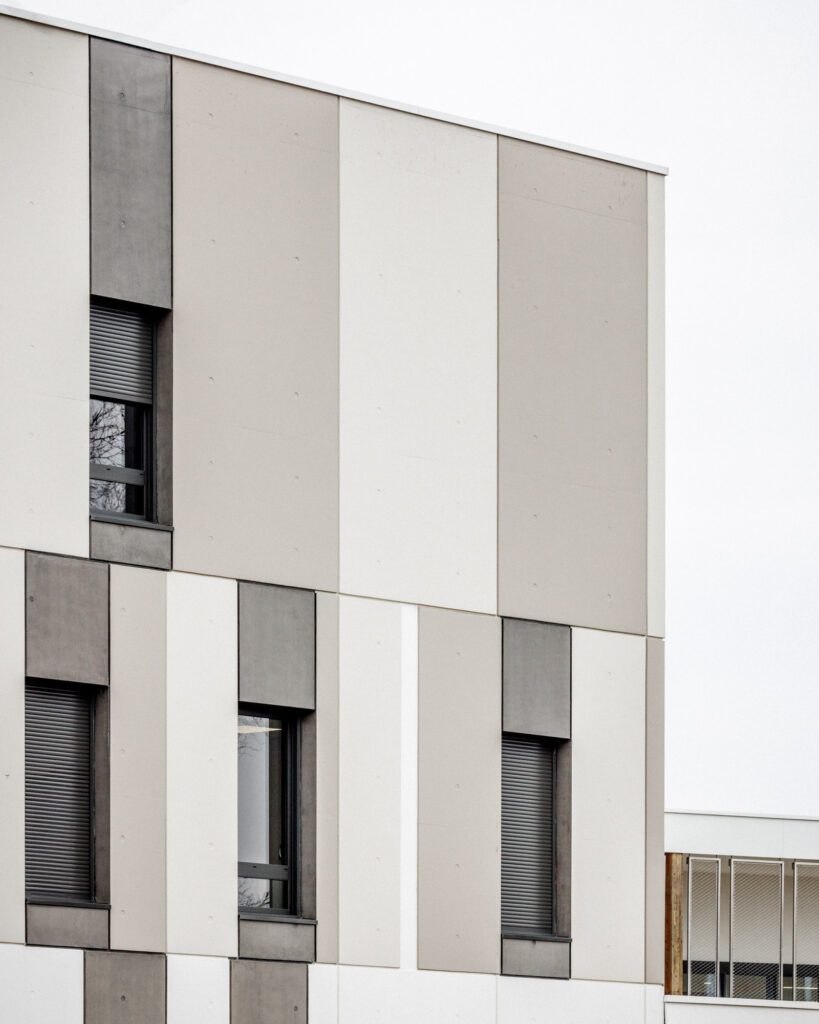 Un nouveau visage pour le Centre de Cancérologie de la Sarthe. Telle un portée musicale, les façades principales du projet proposent un jeu de trames et de teintes.