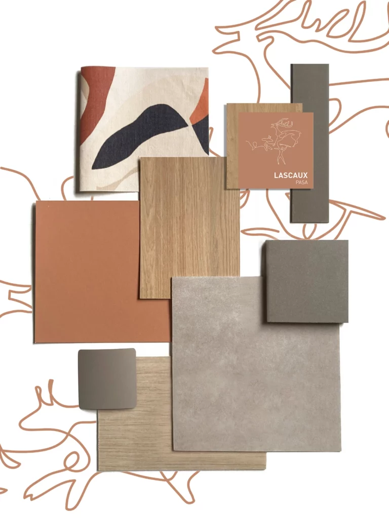 Le PASA s’habille d’un papier peint dynamique, donnant à cet espace clé une identité accueillante et stimulante. Il s’inscrit dans une palette de matériaux et de couleurs pensée pour l’ensemble du projet.