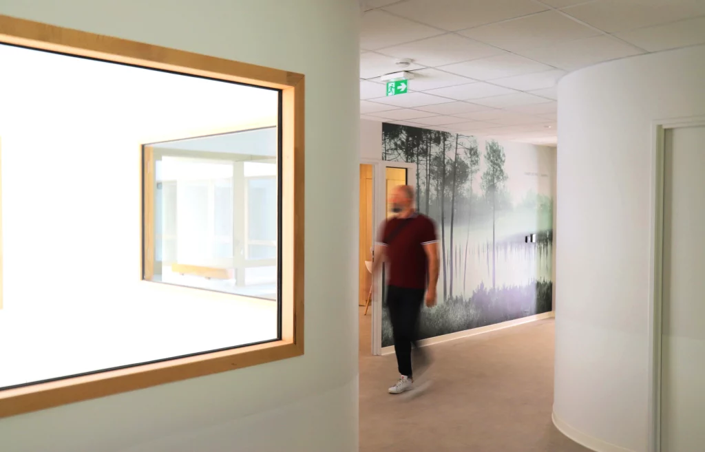 Un travail sur la mémoire visuelle et affective s’exprime à travers un univers d’images et de couleurs évoquant des références locales familières, telles que les champs agricoles, la forêt des Landes ou encore la présence apaisante des lacs. Ces éléments ont été soigneusement intégrés pour créer un environnement rassurant, porteur de repères sensibles et culturels.